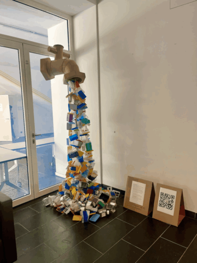 This sculpture is made from 10 kg of single-use lab plastics (only non-toxic, non-biological applications), which is the amount generated by 1 biology lab in 1 week. This is the amount that normally becomes incinerated waste, unless awesome scientists like YOU help us collect it for recycling.
